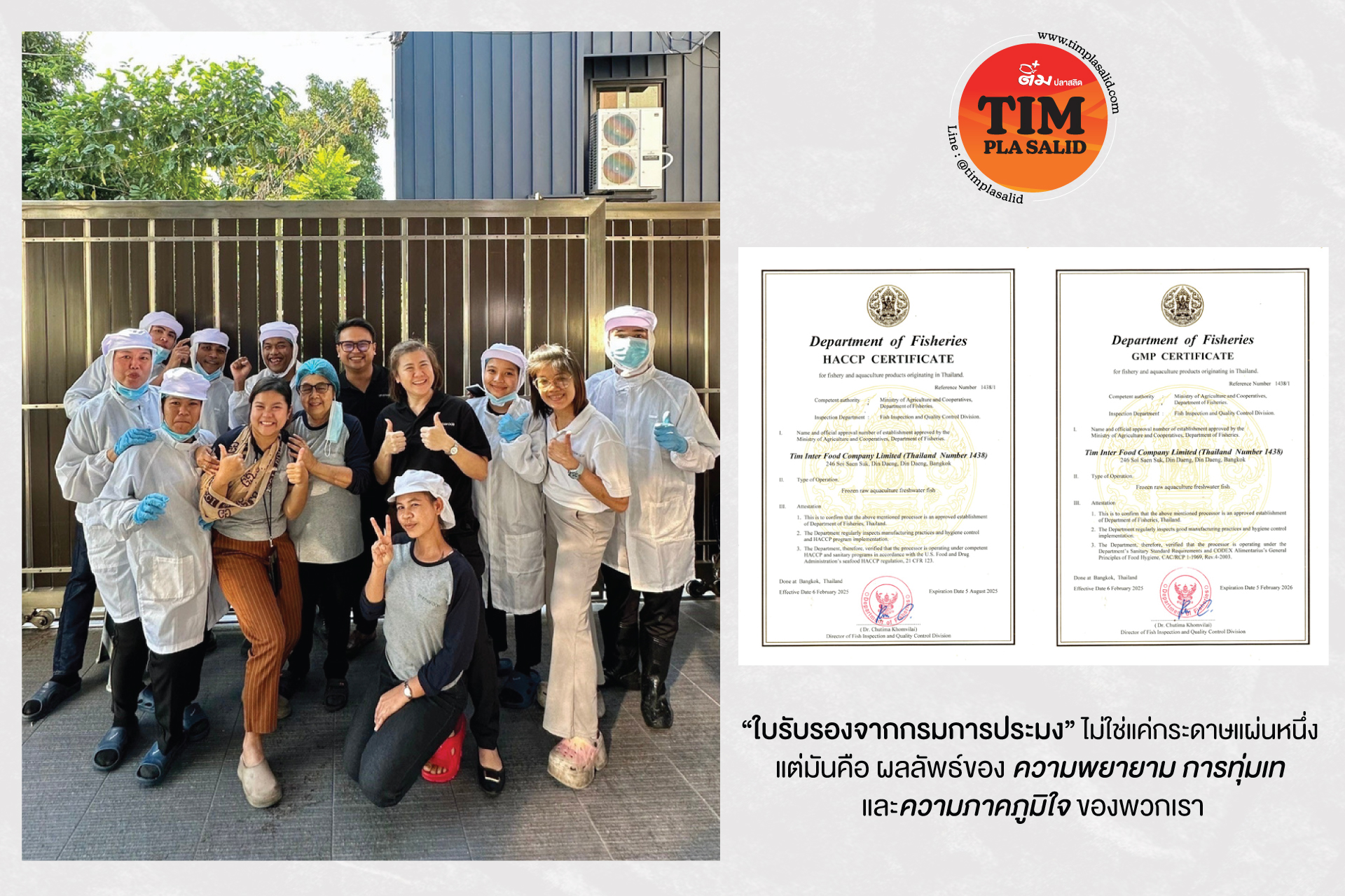 “ติ๋มปลาสลิด” ผลิตในโรงงานระบบปิด (Closed Processing Area) ซึ่งหมายถึงพื้นที่ผลิตทุกขั้นตอนจะถูกควบคุมความสะอาดเป็นพิเศษ
