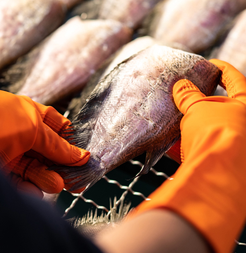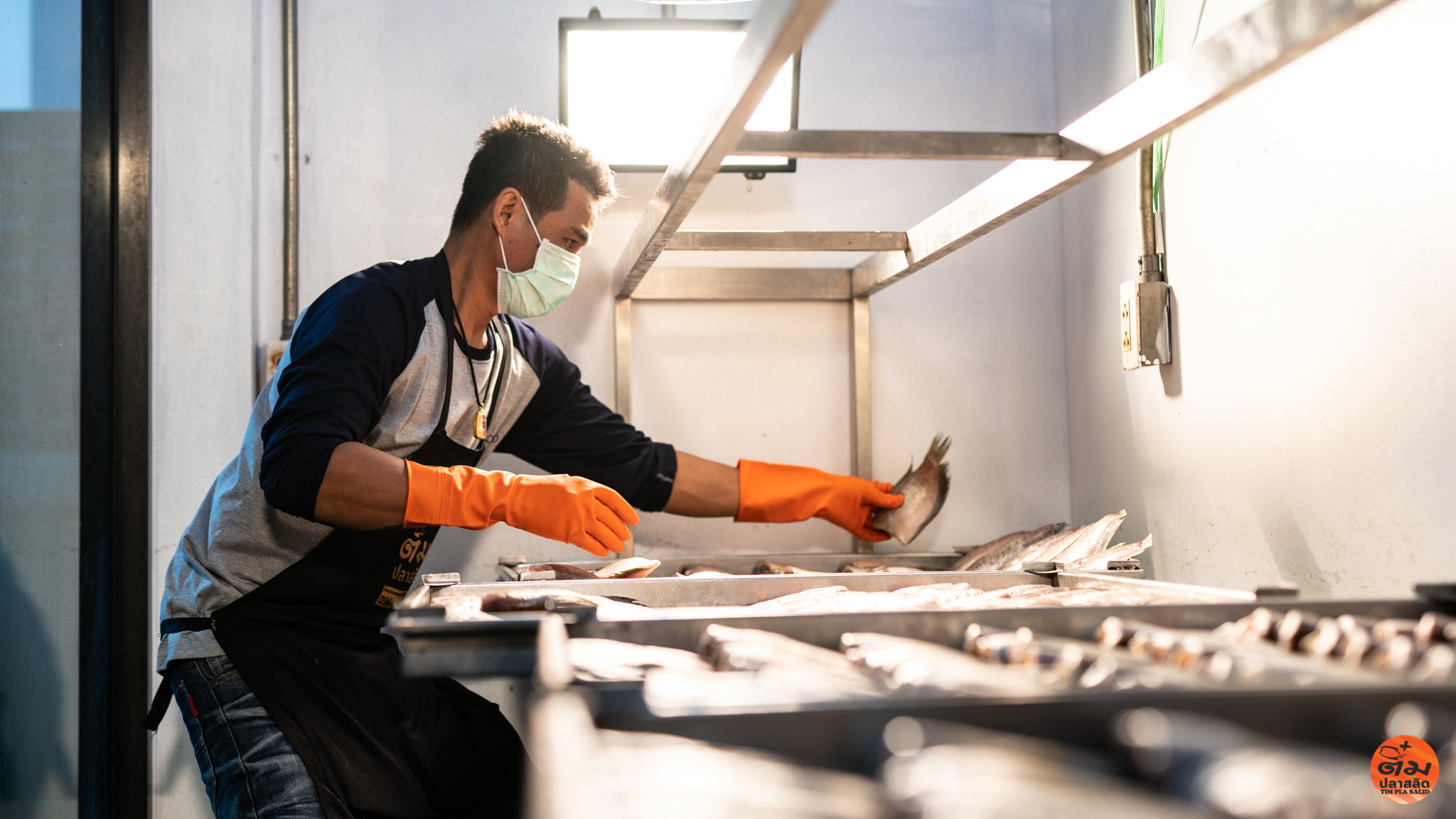 ในขั้นตอนการตาก เราใช้ห้องปลอดฝุ่นและปลอดแมลง พร้อมระบบถ่ายเทอากาศที่ควบคุมด้วยพัดลมอุตสาหกรรมและแผ่นกรอง จากนั้นนำปลาที่แห้งได้ที่เข้าสู่กระบวนการแพ็คในห้องเย็นที่ควบคุมอุณหภูมิอย่างเข้มงวด และแช่แข็งทันทีเพื่อคงความสดไว้ตลอดการจัดเก็บและขนส่ง
